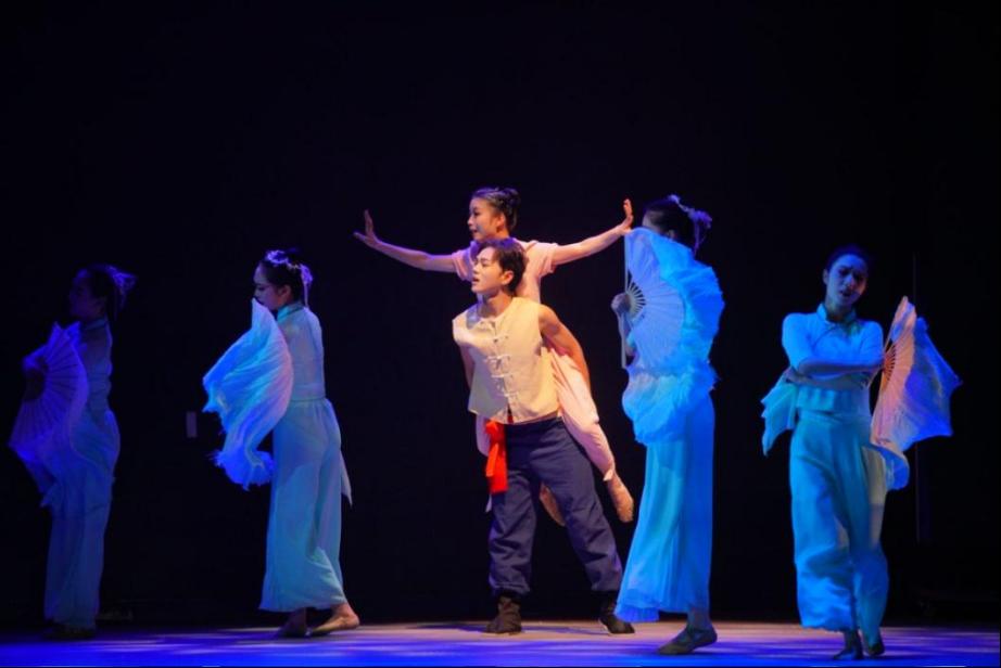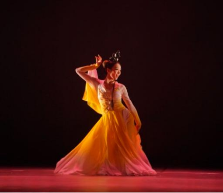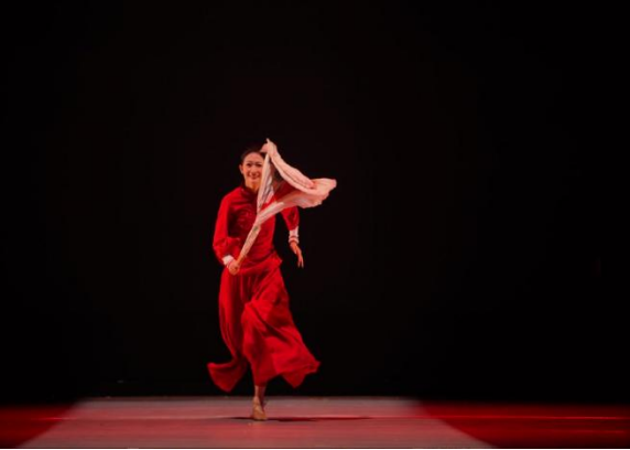 由龚倩教授指导的独舞串烧《韶华共舞》,从《徽娘》《洛神》《藏族热巴鼓组合》三个作品中选取精华舞段进行表演。舞者凭借精湛的技艺,在不同风格的舞蹈之间自由切换,完美展现出多元文化的碰撞与交融,为观众带来一场美轮美奂的视觉盛宴。