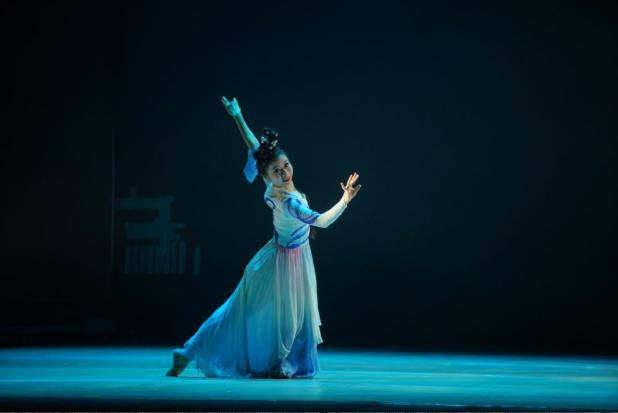 由伍彦谚教授指导的独舞串烧《春澜时》,舞者选取了《温澜潮生》《一江春水》《那时花开》三个作品中的精彩舞段进行演绎。舞者化身春水之灵,在光影交织间细腻地演绎出少女的懵懂情感。其轻盈的身姿、灵动的舞步,如潺潺流水般诉说着青春的故事,将观众带入充满诗意与温情的艺术境界