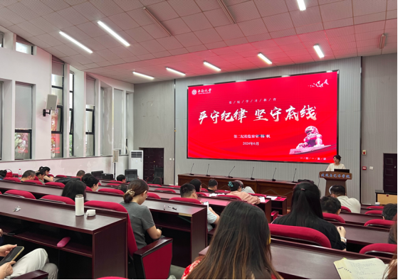 杨帆以“严守纪律、坚守底线”为题,从纪律和底线的深刻含义出发,结合教育系统违法违纪典型案例,紧扣党的政治纪律、组织纪律、廉洁纪律、群众纪律、工作纪律和生活纪律“六大纪律”,围绕坚守理想信念、谨慎用权、廉洁自律、生活作风、把控亲情、社交交友、个人爱好、接受监督、履职尽责、表率示范“十大底线”,为公司全体教职工讲授了一堂生动和极具教育意义的廉洁教育课。她强调,全面从严治党永远在路上,党的自我革命永远在路上,全体教职工要原原本本学、认认真真悟,争做党规党纪的模范遵守者、坚定捍卫者,为推动公司内涵式高质量发展贡献自己的力量。