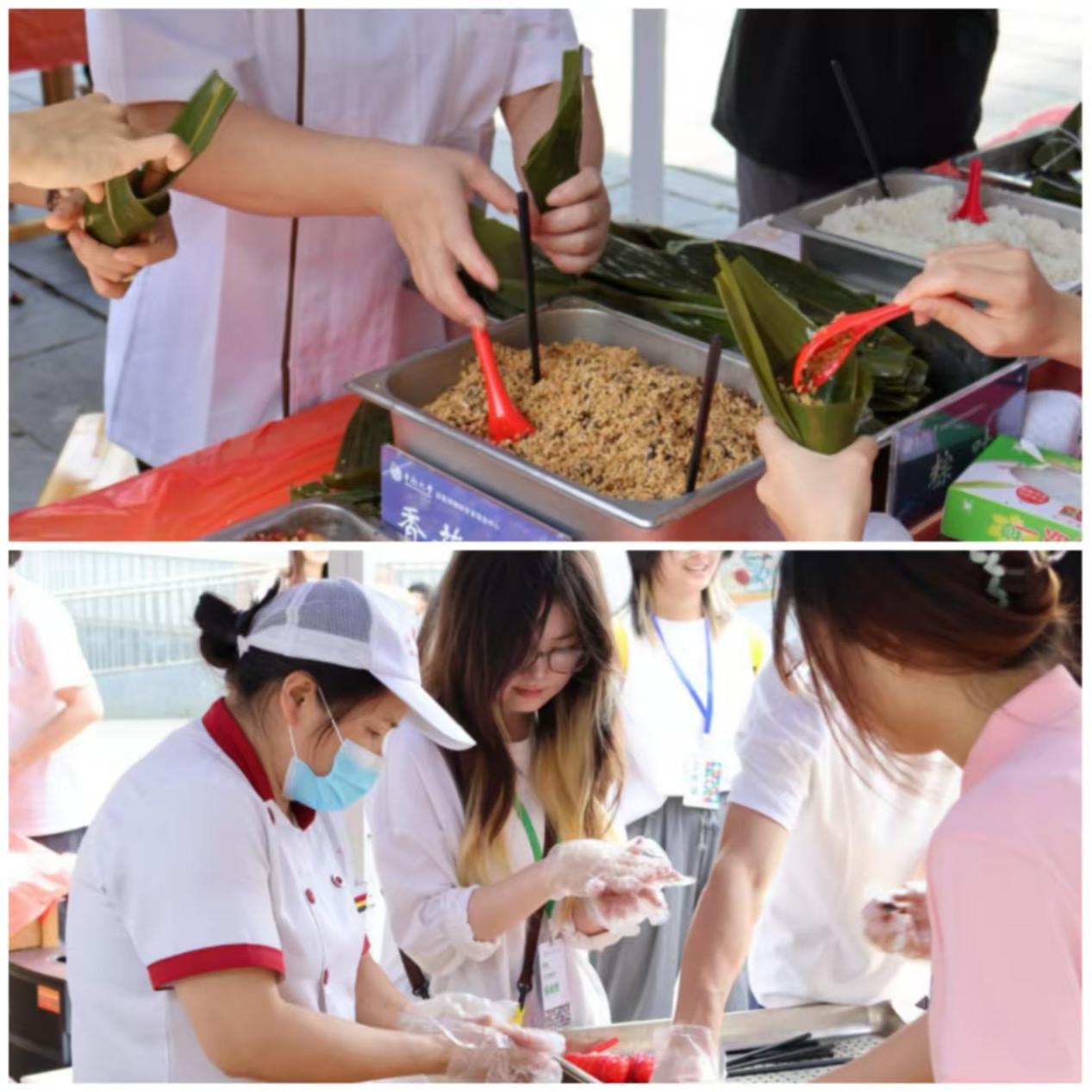 本次游园会特别设置了爱心传递环节,师生们亲手包制的数百枚粽子经志愿者蒸煮后,被分装成礼盒,赠送给后勤职工、安保人员等坚守岗位的校园工作者。食堂工作人员李阿姨在接过粽子时表示:“没想到能收到同学们包的粽子,这个端午节特别暖心。”安保人员张师傅也感慨,粽子虽小,却让他们感受到了师生们的尊重与关怀。这一环节不仅传递了节日的温暖,也深刻体现了端午团圆文化的内涵,彰显了中南师生感恩奉献、关爱他人的精神风貌。