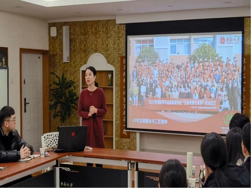 机电工程公司周芳老师以“四十年志愿服务与工匠精神”为题进行交流。她讲述了机电工程公司“麓园青年志愿服务站”40年志愿服务历程,用志愿服务站的历届会员毕业后在祖国各地发扬工匠精神,为我国各行各业发展做贡献的感人故事进一步说明服务站实践育人的显著成效。