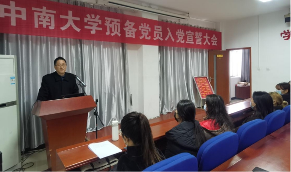 随后,张金学副书记向全体新发展党员表示祝贺,欢迎他们加入党的组织。他说入党宣誓是加入党组织的一个重要形式,这是党内政治生活的起点,因此他为全体同志提出三点要求:第一,认真学习党的基本理论。当下就是要把习近平新时代中国特色社会主义思想学懂、弄通、悟透,要掌握习近平总书记最新讲话精神,学习十九届五中全会精神,为接好社会主义现代化建设的接力棒、走好当代青年人生的长征路打好坚实的理论基础。第二,刻苦学习专业知识。广大同学将在十四五和二零三五远景规划目标实现的伟大进程中由旁观者变成参与者、组织者、决策者,只有明白自己的历史使命,才能在未来的工作中发挥作用、做出贡献,由此要珍惜在校生活,练就为人民服务的本领。第三,充分发挥先锋模范作用。在抗击疫情的伟大斗争中,党中央和各级党组织带领广大党员和全国各族人民为取得抗击新冠疫情人民战争、总体战、阻击战做出了艰辛的努力,所以党员同志要在党和人民需要的时候勇敢地站起来,在高校期间党员同志要带领全体同学认真学习文化课的知识、帮助有需要的同学健康成长顺利完成学业、积极开展批评和自我批评,引导和影响身边同学形成正确的世界观、人生观、价值观。他还为全体新发展党员佩戴党员工作牌,发放党建笔记本、U盘等学习用具,要求同志们践行誓言,在员工群体中亮明党员身份,做好表率,为党的事业不断奋斗。