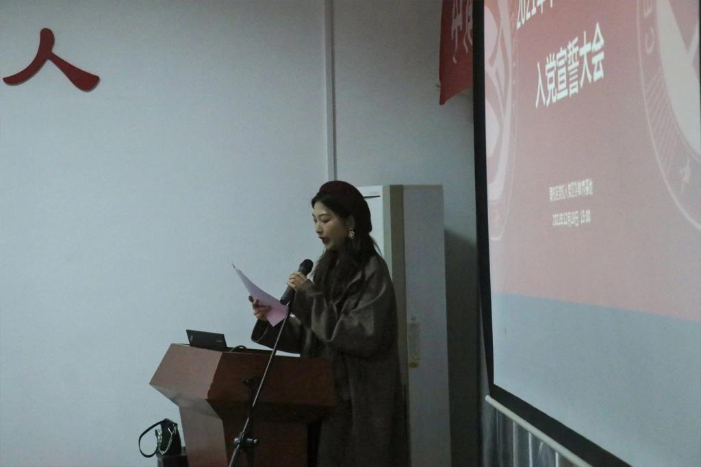 入党宣誓后,预备党员代表音乐表演本科生支部毕悦仪同志发言,她表示,作为青年预备党员,是一份荣耀,更是一份责任与担当,意味着责任和义务已落在新一代人的肩膀。各位预备党员不仅是员工,是孩子,是社会成员,是国家未来栋梁,更是一名光荣的中国共产党预备党员,要在学习、思想、工作中持续奋斗、顽强拼搏,以实际行动践行自己的誓言与承诺。