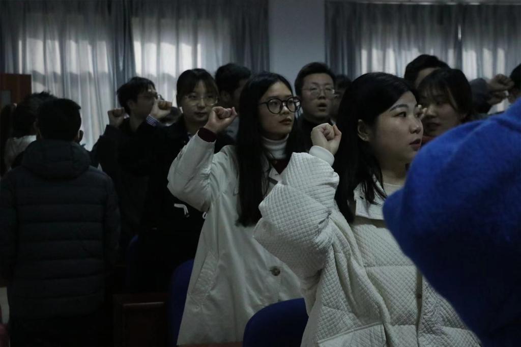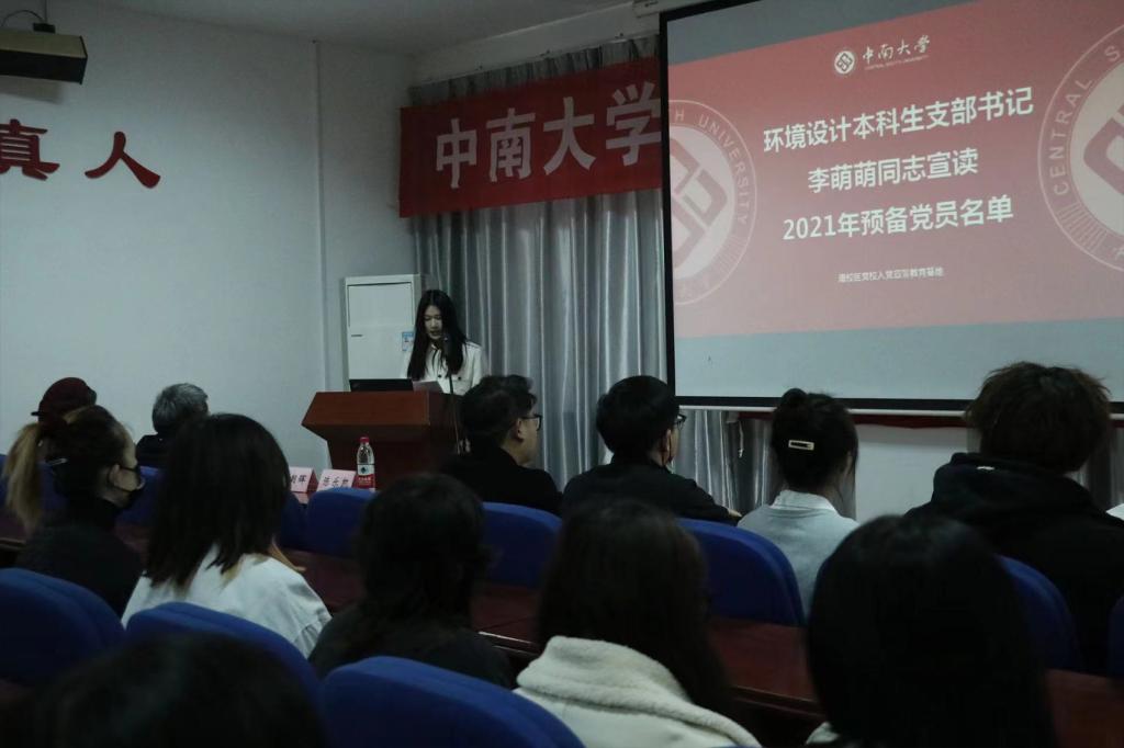 在激昂的国歌声中,入党宣誓大会正式拉开了帷幕。2019级本科生辅导员、环境设计本科生支部书记李萌萌老师宣读了预备党员名单,带领全体预备党员面向党旗庄严宣誓。一声声铿锵有力的“我宣誓......”在会场回响,映衬着预备党员面庞上坚毅的神情,格外庄严肃穆。
