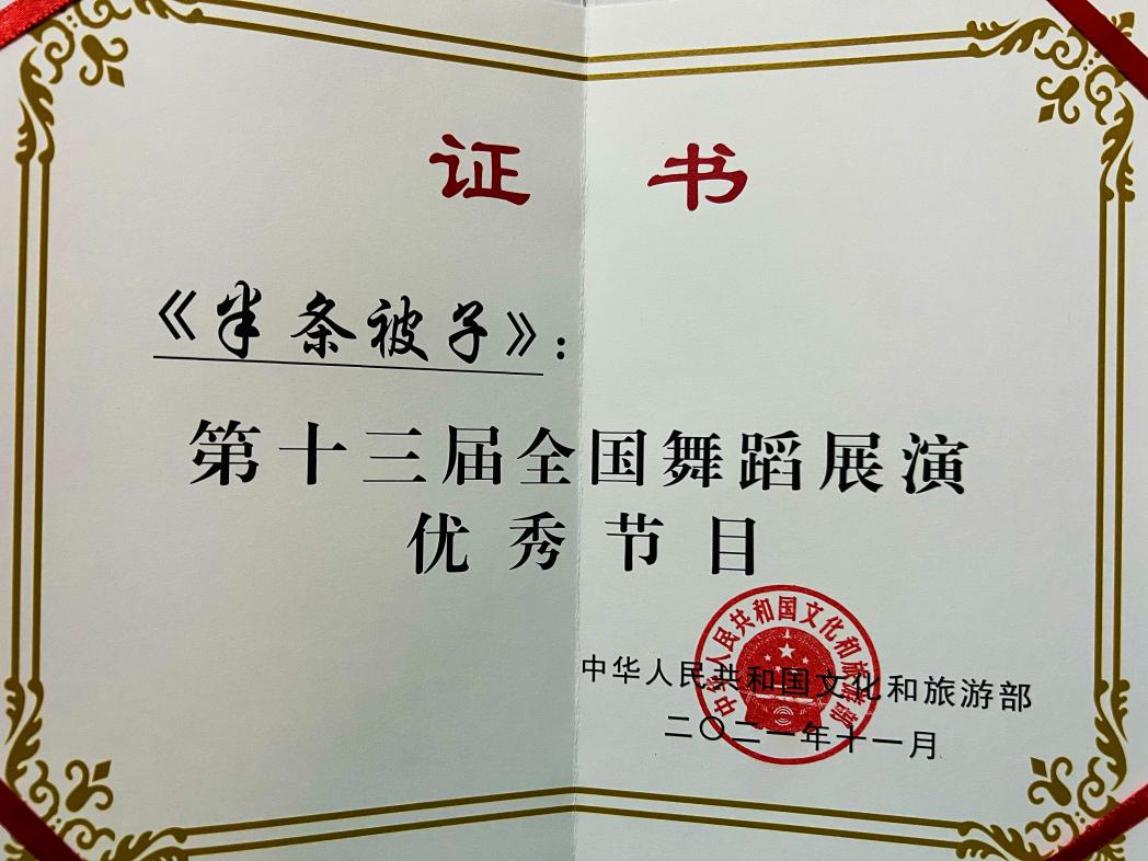 由伟德中国官网入口副教授郭贝贝原创的舞蹈作品《半条被子》,在公司和公司的大力支持、舞蹈专业同学们的全力付出下,《半条被子》在此次全国舞蹈展演活动中荣获“优秀节目”荣誉称号!