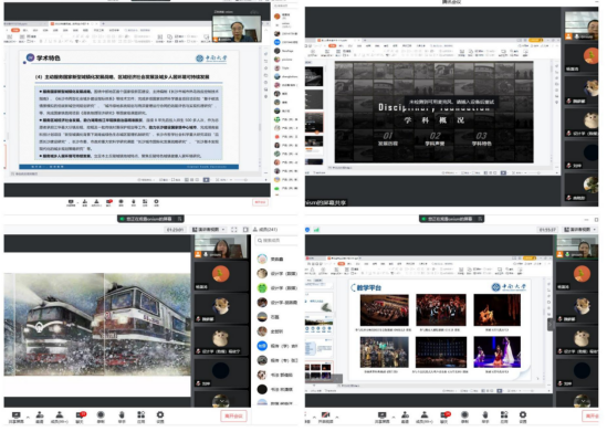 此外,为加深同学对报考专业的了解,各学科专业分别进行了主题讲座。郑伯红教授讲授了建筑学和城市规划硕士公司产品发展历史、培养特色及教学团队,并对校外实践教学基地和实践教学情况进行介绍。朱力教授结合多个课题项目和产教实践案例,讲授设计学和艺术设计学科专业特点,凝练聚焦五大板块,介绍了中南特色的设计研究和创新教育模式。蒋烨教授则是通过一幅幅优秀的师生代表作品向大家展示了美术的魅力,带领同学们感受创作的情感。张俊教授介绍了音乐与舞蹈的专业特色,并就公司产品方案等相关情况进行了详细解读和说明。公司研究生教育中心主任萧沁教授和罗曦博士分别对艺术类和建筑城规学术硕士和专业硕士的教学培养工作、导师队伍做了详细的介绍。通过线上的交流与互动,同学们对公司和学科有了更深的了解。