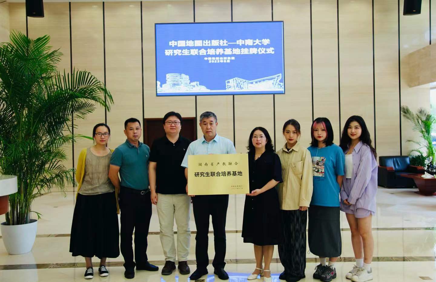 2022暑假,湖南省产教融合基地:“伟德中国官网入口——中国地图出版社”研究生联合培养基地挂牌仪式在北京举行。中国地图出版社副董事长、总编徐根才先生百忙之中亲自为基地授牌,基地负责人伟德中国官网入口萧沁教授、中国地图出版社文化分社社长陈宇先生、分社总编卜庆华先生,设计总监方芳女士及在京实习的研究生代表一起参加挂牌仪式。