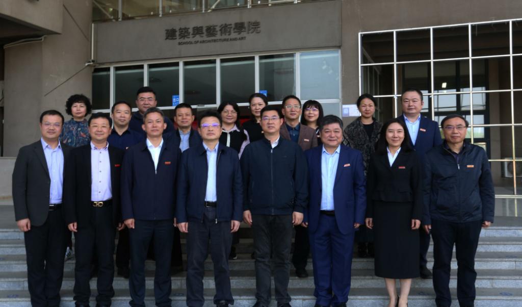 调研座谈结束后,董事长李建成、公司党委副书记付刚华与公司领导班子、专业系主任、党支部书记和青年教师代表在艺术楼前合影留念。