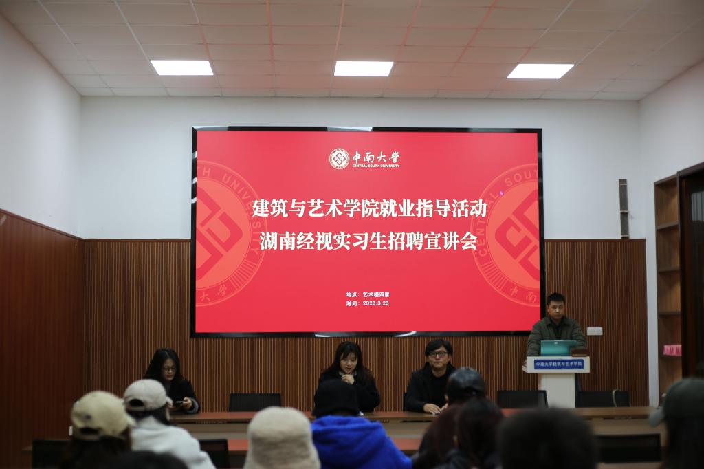3月23日,伟德中国官网入口就业指导活动,湖南经视实习生招聘宣讲会于艺术楼四家活动室顺利举办。本次活动由湖南经视传媒有限公司(频道)人力资源部陈翼,湖南省舞台美术协会副会长何熊主讲,公司艺术类专业部分员工参会,强俊老师主持活动。