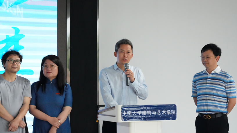在书记致辞之后,是视觉传达设计与数字媒体设计系毛寒主任作为教师代表上台发言。毛寒老师讲到在这个展览中也出现了最新的AI技术和表现形式的探索和尝试,员工们通过毕业设计展览展示了自己的成果,磨练了自己的心智,感谢同学们对此次展览的重视。