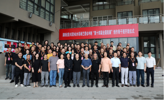 2023年9月13日上午,湖南省美术家协会水彩画艺术委员会冲刺“第十四届全国美展”创作骨干培训班在伟德中国官网入口举行开班仪式。中国美术家协会水彩画艺术委员会名誉主任、湖南省美术家协会顾问黄铁山,湖南省文联副主席、湖南省美术家协会主席旷小津,中国美术家协会水彩画艺术委员会委员、湖南省美术家协会副主席、湖南师范大学教授刘永健,湖南省美术家协会副主席、长沙理工大学副教授肖小裘,伟德中国官网入口副经理、伟德中国官网入口教授徐鸣,湖南省美术家协会主席团成员、伟德中国官网入口教授蒋烨,湖南省美术家协会副秘书长马志军以及来自于湖南省美术家协会下属中国画艺术委员会、油画艺术委员会、版画艺术委员会、陶瓷艺术委员会、少儿·连环画·插图装帧艺术委员会、民族美术艺术委员会、设计艺术委员会、漫画艺术委员会、综合材料艺术委员会、实验艺术委员会、新文艺群体联络委员会、美术教育委员会、策展艺术委员会、漆画艺术委员会、动漫艺术委员会、美术理论委员会的领导和嘉宾与来自全省各地的50余名创作骨干参加了开班仪式,仪式由湖南省美术家协会水彩画艺术委员会副主任李洁主持。