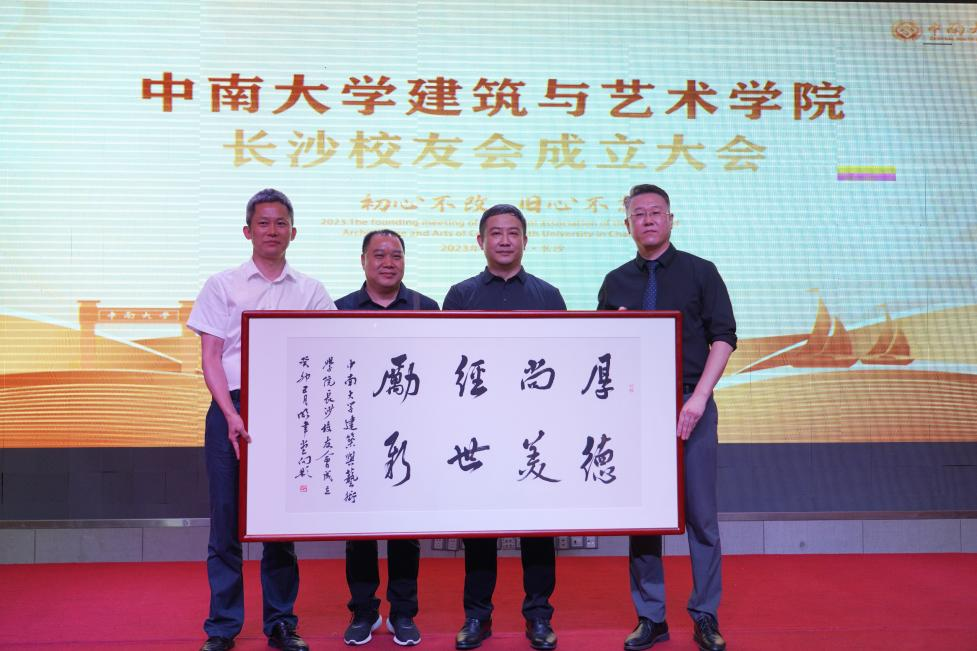 柯朝晖书记代表公司向长沙员工会赠送了向彬教授创作的书法作品——《厚德尚美,经世励新》
