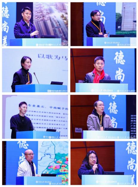 座谈会后,专业办学发展论坛接续进行。八位优秀员工依次带来主旨分享。沈驰以《我在岭南做建筑》为题,拆解岭南建筑地域文化与现代设计的融合之道;陈日红的《从云麓园到昙华林》串联校园学习与实践经历;李凯丽在《以歌为马,不负韶华》中分享音乐教育与舞台实践的双向赋能经验;周振鸿用《从设计到创业的分享》为师生提供实战避坑指南;李冠以《从舞台到云端》拆解舞者跨界新媒体的运营逻辑;周小龙、朱海和、欧偲则分别以《知来路去处》《与时代同行》《艺脉相承》为题,分享建筑装饰设计的人文思考、城乡规划的行业趋势及雕塑创作中的匠心传承等。
